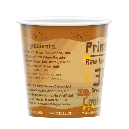 We ditched the flour, refined sugars, and junk. Instead, our cookie dough is made from grass-fed whey protein, grass-fed butter, 100% cacao, and raw, unfiltered honey—giving you all the nostalgic flavor of cookie dough with none of the compromise. Every bite is rich, creamy, and naturally sweet, blended into our velvety, grass-fed ice cream base for a decadent experience you can feel good about.